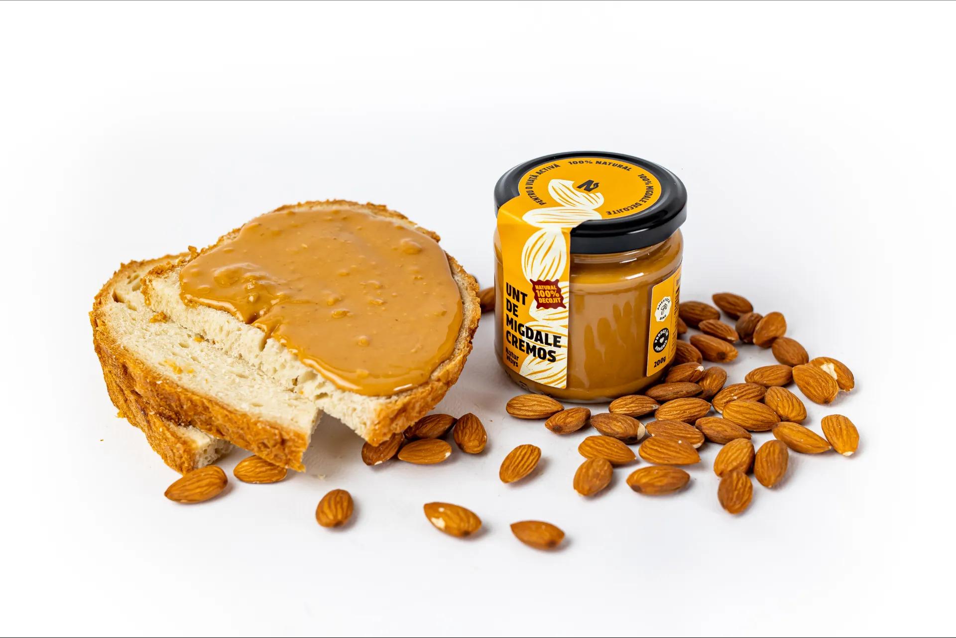 Beneficii: Untul de migdale este o alegere sănătoasă și delicioasă, bogată în nutrienți esențiali. Beneficiile sale includ aportul de grăsimi sănătoase, vitamine și minerale. Consumat cu moderație, untul de migdale poate sprijini sănătatea inimii, contribuind la reducerea nivelului de colesterol. De asemenea, este o sursă bună de proteine, fibre și antioxidanți.